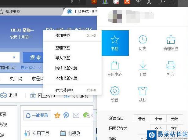 1、先不吐槽了,直接說說怎么操作吧,首先我們點擊右上角的設置按鈕,選擇書簽——整理書簽
