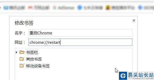 2、在網址欄輸入:chrome://restart,名字的嘛你隨意即可。然后點擊底部的保存按鈕即可。