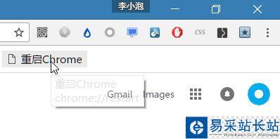 3、然后在感覺Chrome 越來越卡的時候,點擊下收藏欄的重啟Chrome的書簽,一般需要數秒就可以釋放內存,讓電腦重新恢復正常啦。