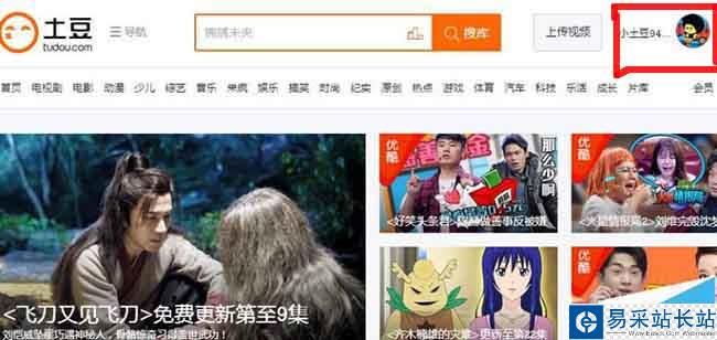 1、百度搜索“土豆視頻”,點擊進入,在右上角找到自己的頭像,注意,要線登陸賬號,如下圖所示。