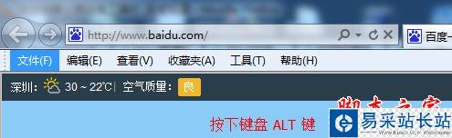 以上鍵盤操作只是為了方便臨時查看“菜單欄”項目,如果需要顯示在IE瀏覽器上,可以通過