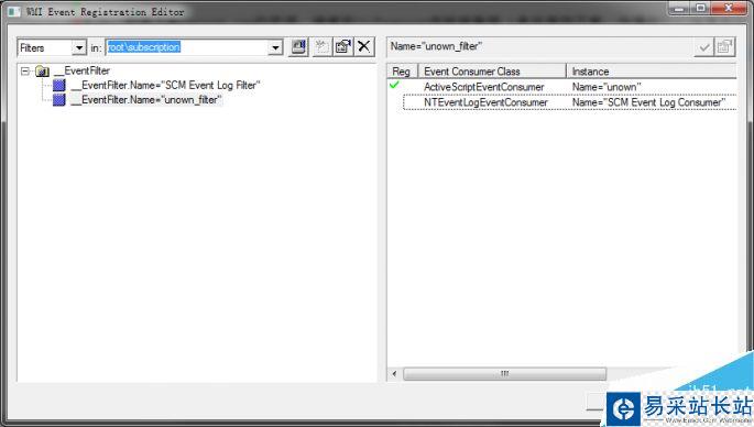 點擊左側_EventFilter:Name="unown_filter",再至右側右鍵點擊ActiveScriptEventConsumer Name="unown",選擇view instant properties,