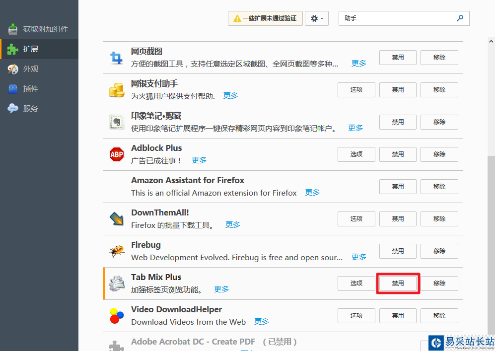 3、如果不想禁用 Tab Mix Plus 插件,那么就禁用或者移除網銀支付助手插件。
