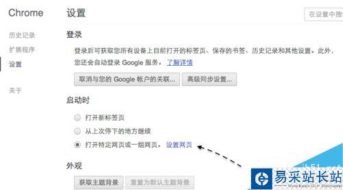 接著再點擊【設置網頁】選項,設定自己想在打開 Chrome 瀏覽器時所打開的頁面地址。