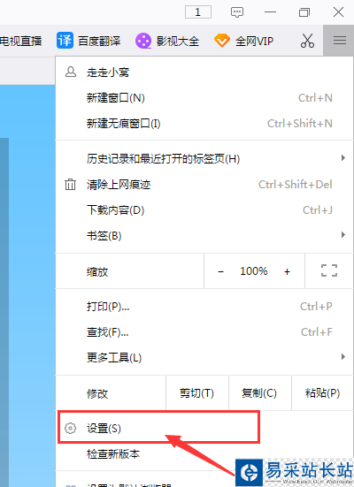 2、點(diǎn)擊瀏覽器右上角三橫杠的【自定義】菜單