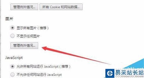 如果只是個別網頁不能夠正常打開網頁的話,我們再點擊“管理例外情況”按鈕