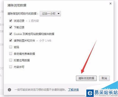 這時會彈出清除瀏覽數據窗口,點擊上面的“清除瀏覽數據”按鈕,清除完chrome瀏覽器緩存后,再打開網頁看一下圖片是否可以正常顯示