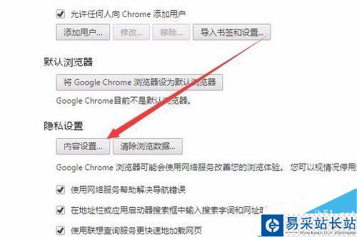 找到隱私設置一項,然后點擊“內容設置”按鈕