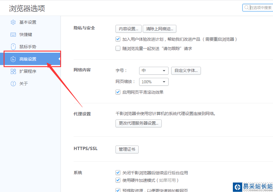 千影瀏覽器怎么隱藏鼠標指針的移動軌跡?