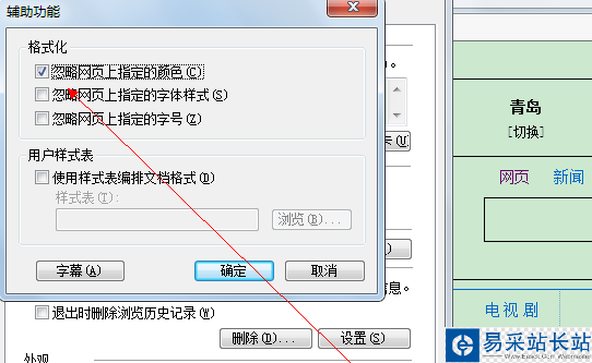 4、如下圖所示,可以看到,這里勾選了忽略網頁上指定的顏色。取消勾選即可。