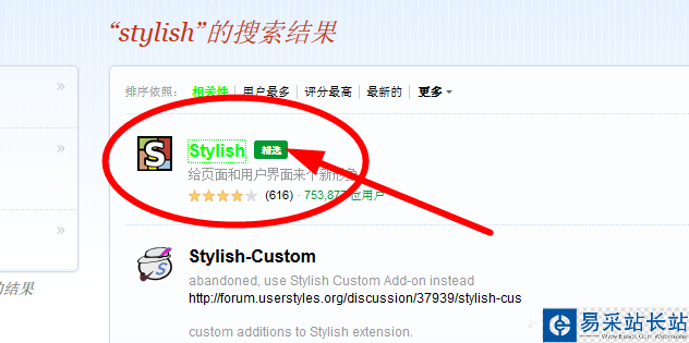 3、搜索之后可能出現的結果并不很多,這時我們點擊查看全部的結果,在新出現的網頁中找到Stylish,并添加。