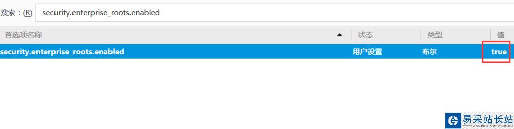 4、在搜索欄中輸入,“security.enterprise_roots.enabled”;