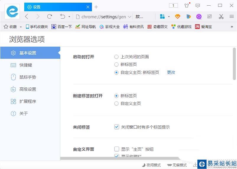 4、點(diǎn)擊設(shè)置選項(xiàng)后,這個時候會跳轉(zhuǎn)到瀏覽器設(shè)置頁面。如圖所示;