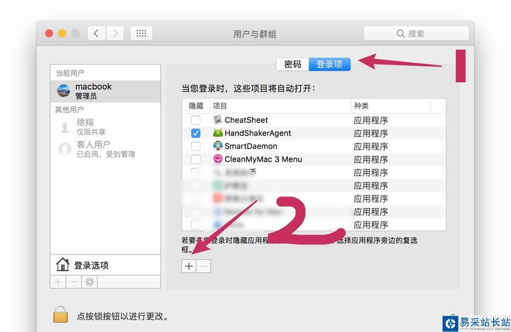 6、添加開機(jī)啟動(dòng),為了方便使用,打開偏好設(shè)置,然后點(diǎn)擊用戶,按圖二的方法添加即可。