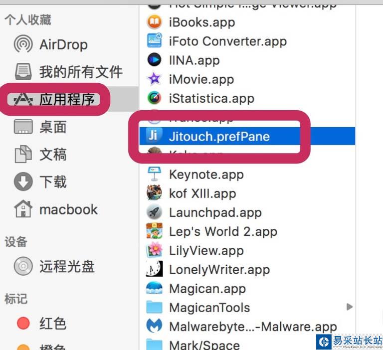 1、將jitouch的Zip壓縮格式文件拖入finder應(yīng)用文件夾內(nèi),然后打開軟件。