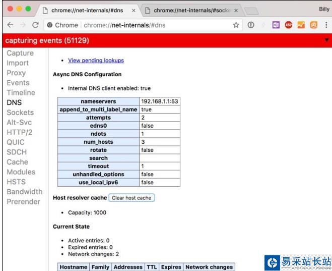 在地址欄中執行以下 URL:chrome://net-internals/#dns