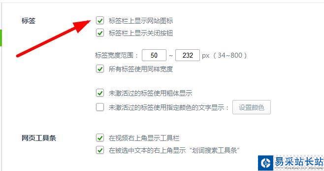 6、勾選標簽上顯示網站圖標,如圖所示。
