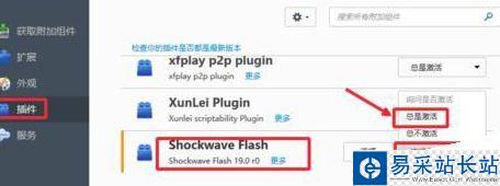然后右邊找到Shockwave Flash插件,點擊這里詢問是否激活。這里將詢問是否激活,改為總是激活即可,如圖所示點擊選擇。