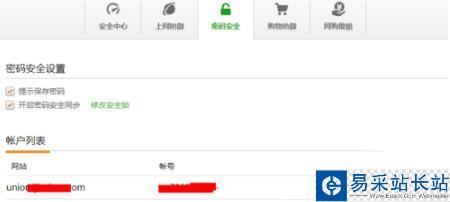 3、點擊“密碼安全”選項。就會看到對應的網站和賬號。
