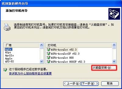 在“找到新的硬件向導”窗口中,點擊“從磁盤安裝”按鈕。如圖 4 從磁盤安裝所示: