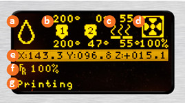 5.當打印機開啟時,所有溫度應被讀取為未被設定(相應圖標上以‘0’表示),然后實際溫度大約為室溫(通常數字為15°c 到30°c之間)。