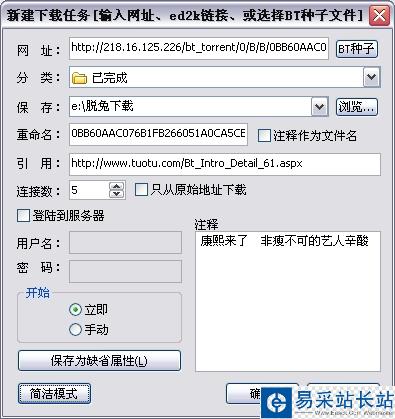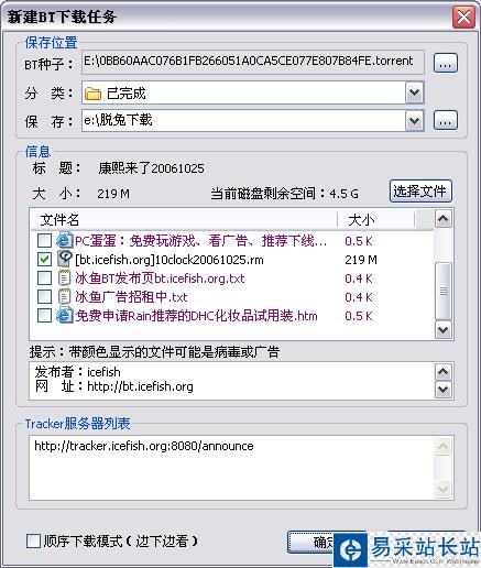 點擊種子文件,脫兔會啟動并彈出"新建BT下載任務"的對話框