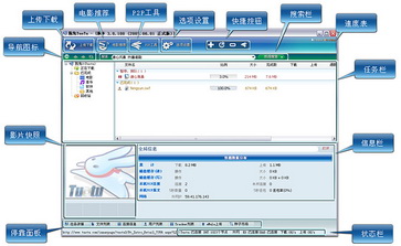 右側由兩欄組成,上邊是任務列表,顯示下載任務的大小、速度、時間等信息甚至可以當瀏覽器瀏覽下載頁面;下邊是下載連接的信息。
