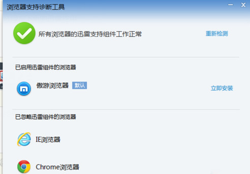 第三步:讓后就會彈出瀏覽器診斷工具,這個時候你就可以看到目前你上安裝的可識別的瀏覽器,并且顯示是否可支持
