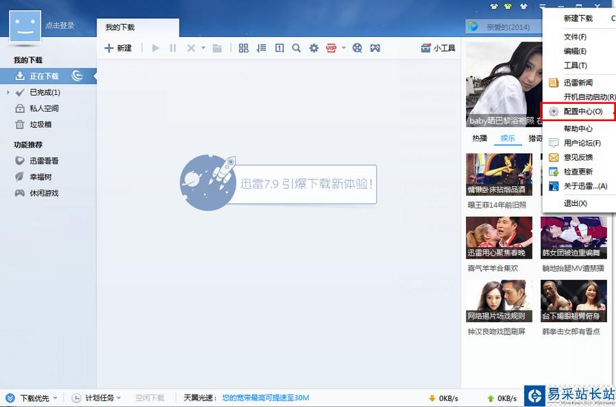 1、首先我們點擊迅雷右上角的下拉中的“配置中心”