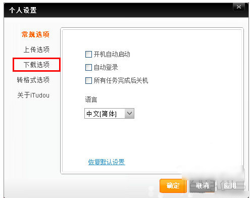3、接下來,在下載選項中,我們可以對下載的速度和數量進行限制設置。還可以看到itudou 視頻下載文件存放的路徑。系統默認會把下載的視頻文件存放在 C:盤目錄中。當我們視頻下載多了,視頻占用C盤的空間也會越來越大,導致系統運行速度緩慢,并且默認的存放路徑也不便于我們查找和打開。