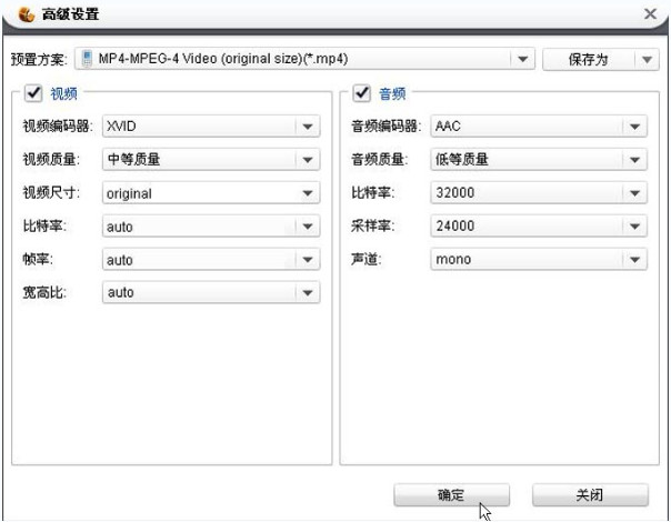 4、選擇“預制方案”后面的“高級設置”可以對尺寸、比特率等等一系列的參數(shù)進行設置
