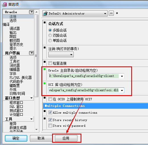 4、文件路勁地址復制進去后,會立即彈出提示您更改將在重啟PLSQL后有效,如下圖所示點擊確定,然后關閉PLSQL程序,重新打開PLSQL