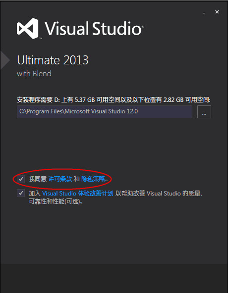 3、自定義選擇安裝路徑時,注意所屬路徑的預(yù)留空間要充足,否則安裝會失敗,同意許可條款,進行下一步