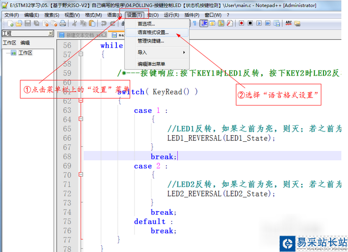 1、首先,點(diǎn)擊菜單欄上的“設(shè)置”菜單,然后在彈出來的下拉列表中選擇“語言格式設(shè)置”,具體操作情況如下圖所示: