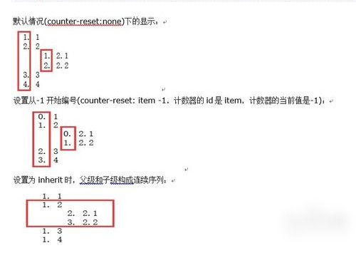 下面通過counters方法將所有的計數器顯示,以圓點(.)分隔,list-style-tyle為decimalcontent: counters(item,".",decimal) "# ";
