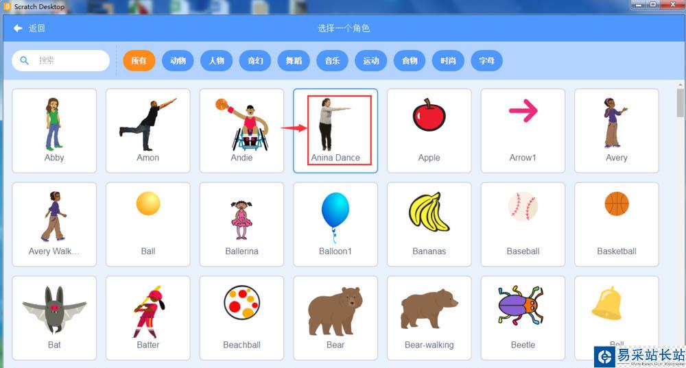 4、在scratch3.0中創建好了一個人物角色Annie;
