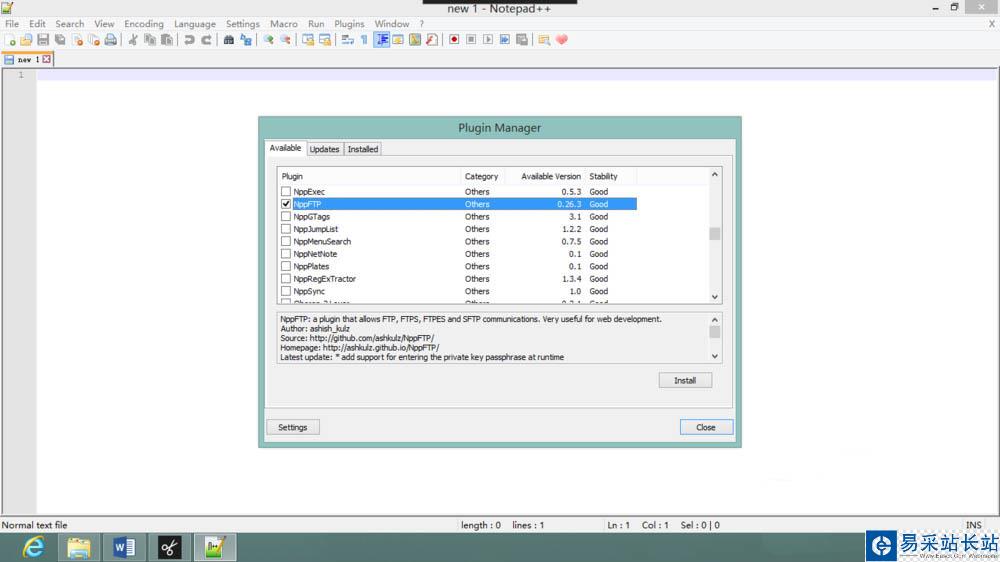 2、在顯示的插件列表中選擇nppftp插件(點擊查看詳細安裝教程),點擊install進行安裝。