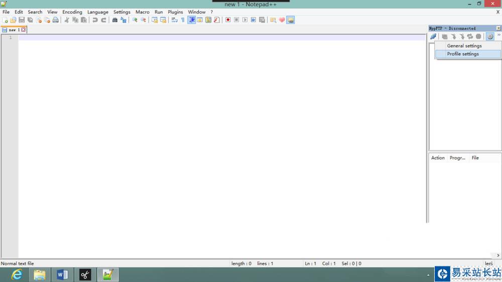 4、這時右邊欄會顯示nppftp的窗口,點擊右上角的像齒輪一樣的按鈕,選擇profile settings.
