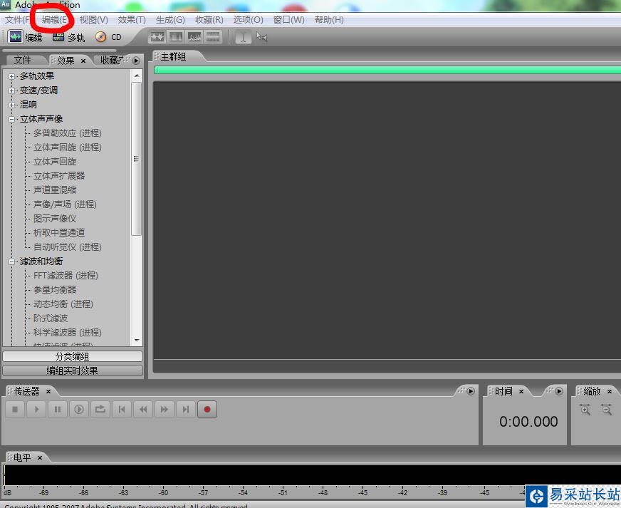 2、打開軟件界面,點擊編輯>>音頻硬件設(shè)置