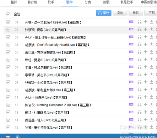 3、點開之后,我們往下拉,就會看見到目前為止,歌手所以的歌曲,我們可以試聽或者下載。