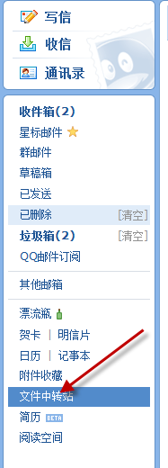 3、打開qq郵箱,找到左邊最下面有個文件中轉站