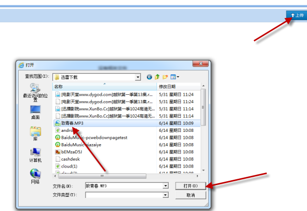 4、把剛才下載的歌上傳到中轉站,上傳完成后,點擊“下載”,會彈出一個框,然后把鏈接拉到最后全部復制,再粘貼到qq聊天窗口看,找到"mp3",把在mp3之前的(包括mp3)鏈接復制出來,這就是你要找的真正的網絡歌曲鏈接