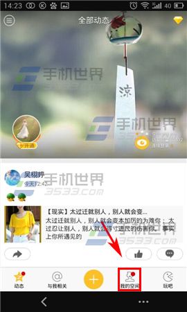 1)打開進(jìn)入QQ空間,點(diǎn)擊下方功能欄【我的】,點(diǎn)擊我的空間左上角【設(shè)置】。(如下圖)