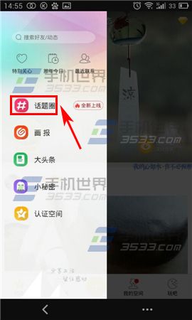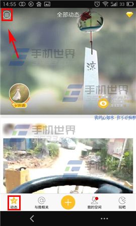 1)進入QQ空間,選擇功能欄中【動態】,在動態頁左上角點擊【三】,接著點擊【話題圈】。(如下圖)