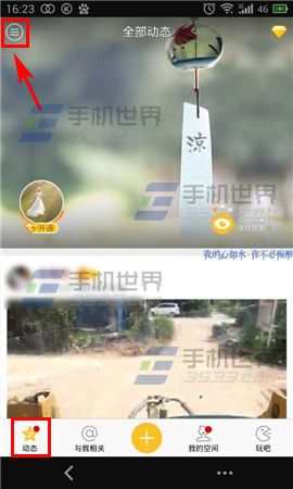 1)進入QQ空間以后點擊下方【動態(tài)】,在動態(tài)頁的左上角點擊【三】,接著點擊【話題圈】。(如下圖)