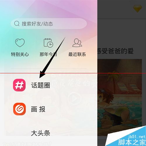 3、然后屏幕左邊彈出側邊欄,第一個功能就是【話題吧】了,點擊打開看看新變化吧。