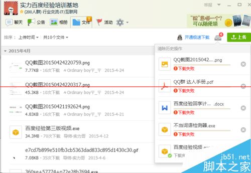 1、當我們在qq群下載東西的時候,如果出現這個問題,全部顯示下載失敗。說明無法下載群里的東西。那么問題來了,我們可以去網頁版下載