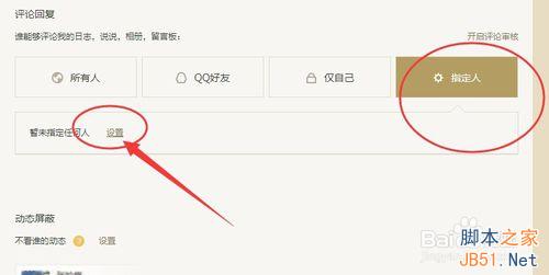 5、當(dāng)然,如果想要針對部分好友,選擇后面的“指定人”,然后對指定的好友進(jìn)行設(shè)置,之后你指定的這部分人就可以不需要審核就可以評論留言了。