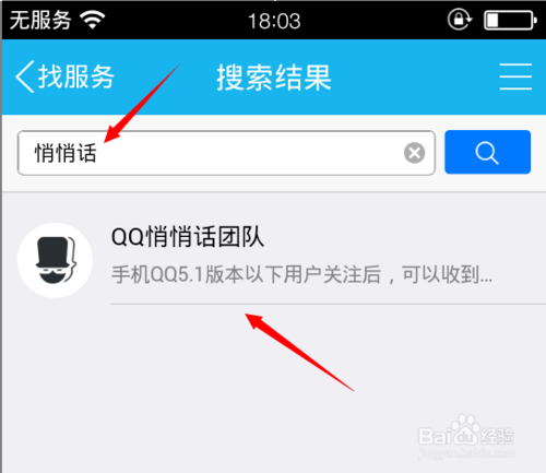 第二步:接下來再點擊生活服務右上角的找服務功能。假如你已經使用過悄悄話功能,他就會在這里出現,假如沒有,只能按下面的方法去找。