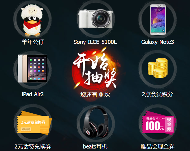 會員積分、話費券、相機、iPad air2、三星note3等。